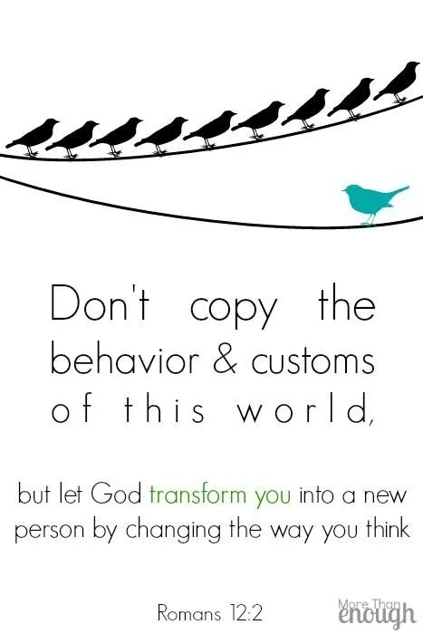 “Do not be conformed to the world but be transformed by the renewal of your mind that by testing you may discern what is the will of God, what is good and acceptable and perfect.” Romans 12:2